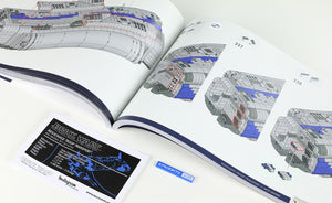 All manuals are professionally printed in full color with a 100lb Matte finished cover. Interior pages are printed on 80lb satin which makes it easier to follow the instructions during your build with less glare. The pages are thicker for more durability. Typical LEGO® instructions are normally printed on flimsy newsletter. My manuals are printed on a more durable paper typically found in high end catalogs.