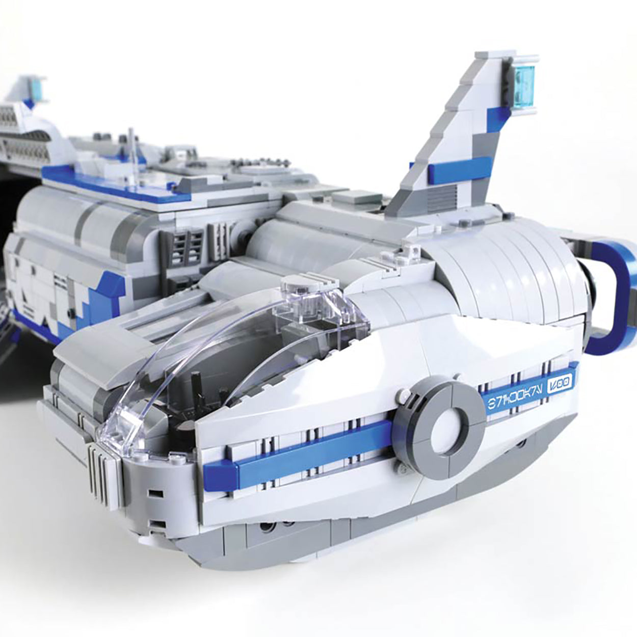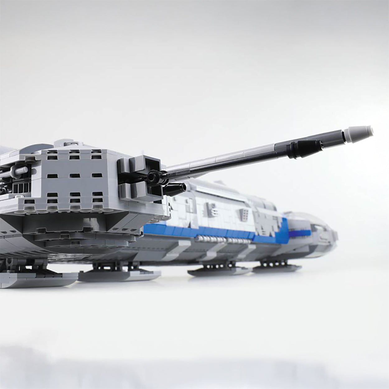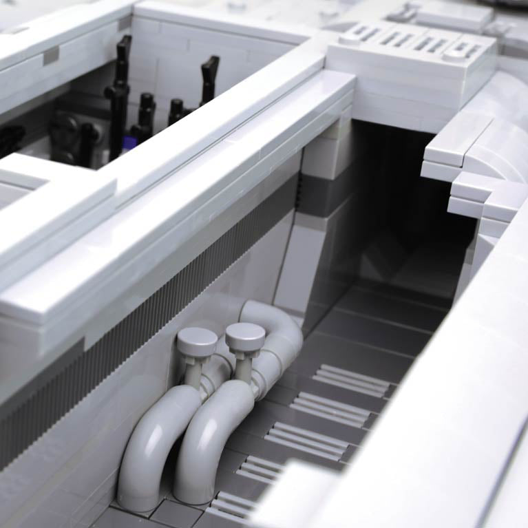 The entire model is broken down into three modules; the main hull, laser cannon and pod. Each module has its own set of milestones which build off the other. The model is built to minifigure scale.