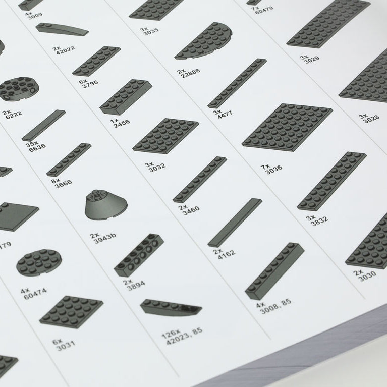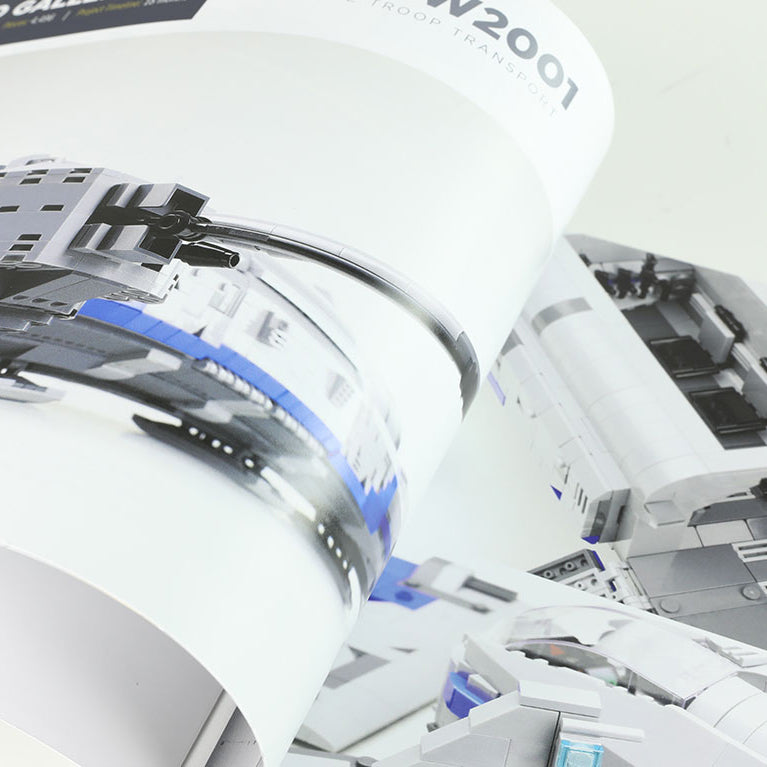 All manuals are professionally printed in full color with a 100lb Matte finished cover. Interior pages are printed on 80lb satin which makes it easier to follow the instructions during your build with less glare. The pages are thicker for more durability. Typical LEGO® instructions are normally printed on flimsy newsletter. My manuals are printed on a more durable paper typically found in high end catalogs.