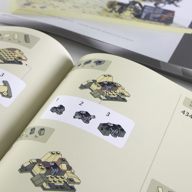 All manuals are professionally printed in full color with a 100lb Matte finished cover. Interior pages are printed on 80lb satin which makes it easier to follow the instructions during your build with less glare. The pages are thicker for more durability. Typical LEGO® instructions are normally printed on flimsy newsletter. My manuals are printed on a more durable paper typically found in high end catalogs.